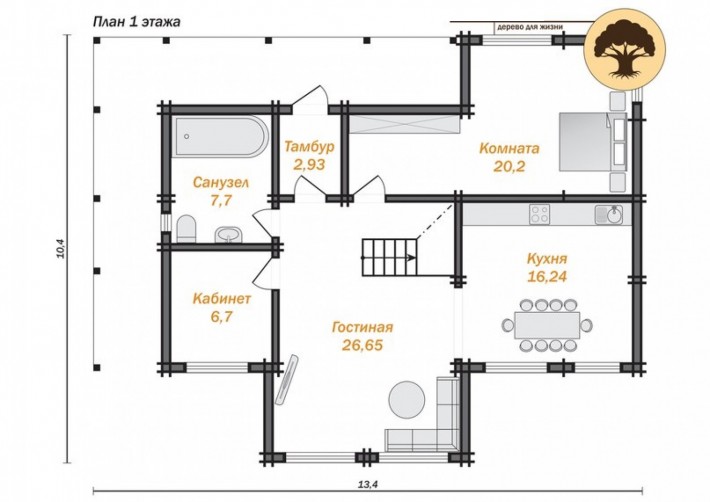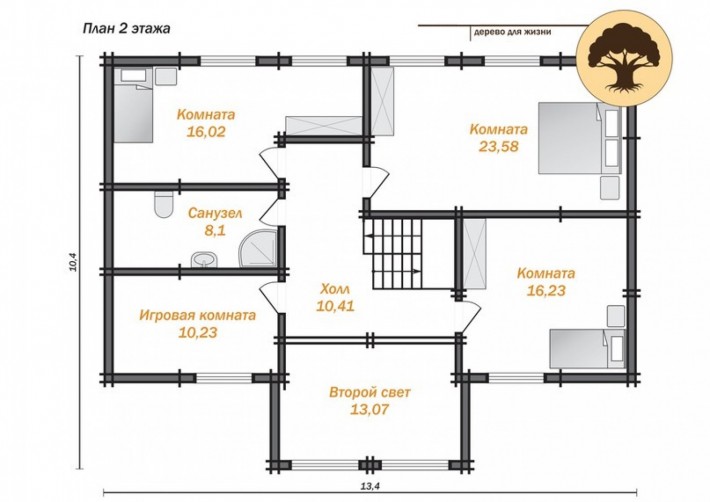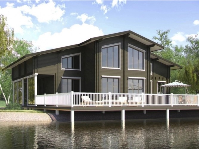 Уникальный дом по проекту "Торрея'" изготовленный из двойного бруса, приятно удивляет своими планировочными решениями: большие окна, второй свет и многое другое.