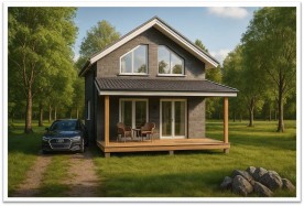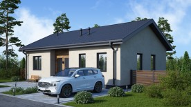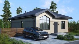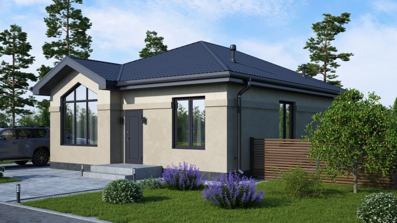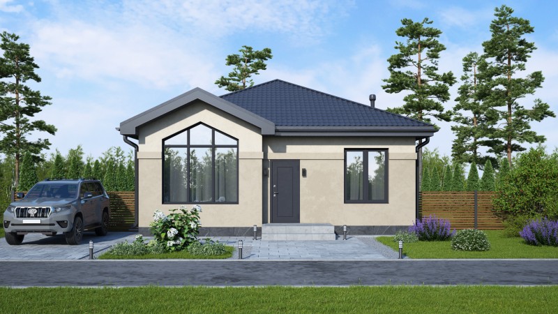 Компактный функциональный одноэтажный дом с оригинальным фасадом и интересной кровлей. Имеет три просторных спальни, кухню гостиную с выходом на задний двор, котельную-постирочную, второй санузел можно разместить в котельной.