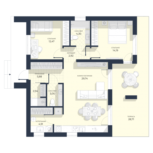 Дом, в котором всё продумано для вашего комфорта. Большой зал, столовая и кухня — именно здесь будут проходить и тихие семейные вечера, и весёлые праздники с гостями! Спальни для личного времени и отдыха!